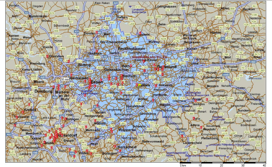 Die von metranet erfassten Stellen können mit Hilfe einer neuen Schnittstelle an die Software Microsoft MapPoint übermittelt und dort ausgewertet werden. Dabei ist insbesondere die Stellendichte für ausgewählte Branchen und Berufe von Interesse, da diese einen ersten Rückschluss auf die Vermittlungsfähigkeit zulässt.